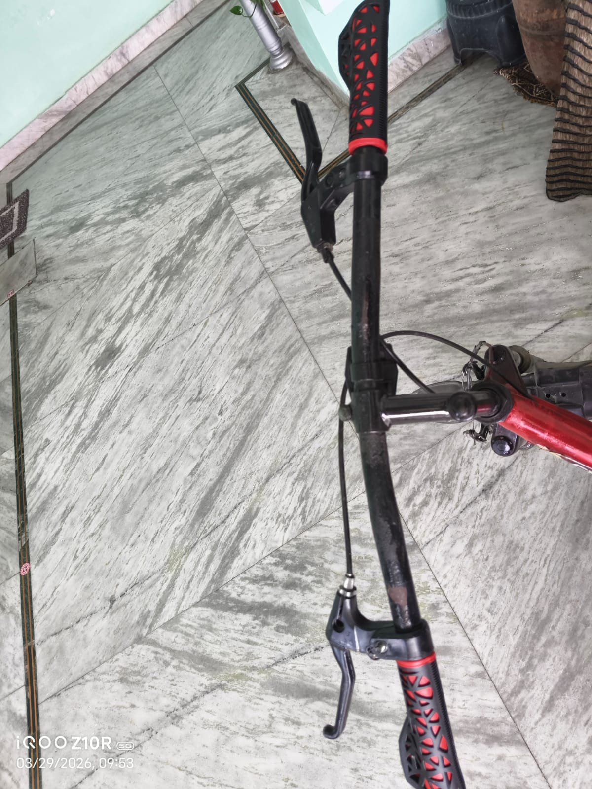 Uncle also fitted the handbar grips and shortened the brake length on the handlebar according to the grip size. The grips were not so broad that they could not be fitted easily, so the uncle put a slippery gum inside the grips so that they could be easily fitted. But the grips gave a next-level look to my bicycle.