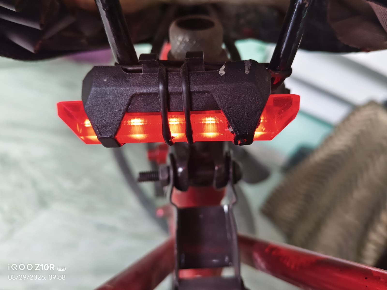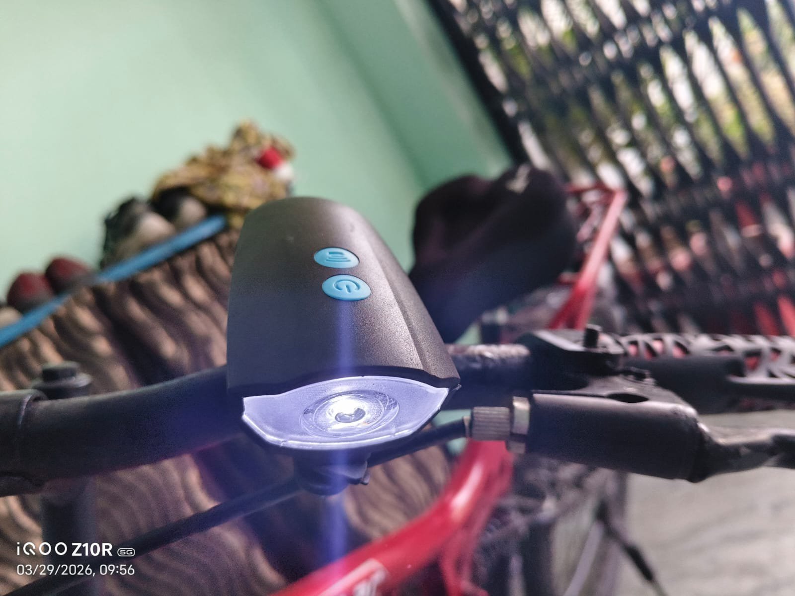 After that, I set up the lights that I had bought, and the front light with horn is of good quality, and the back light has different modes, and they all are rechargeable, and they all came with a lock at a very good price.